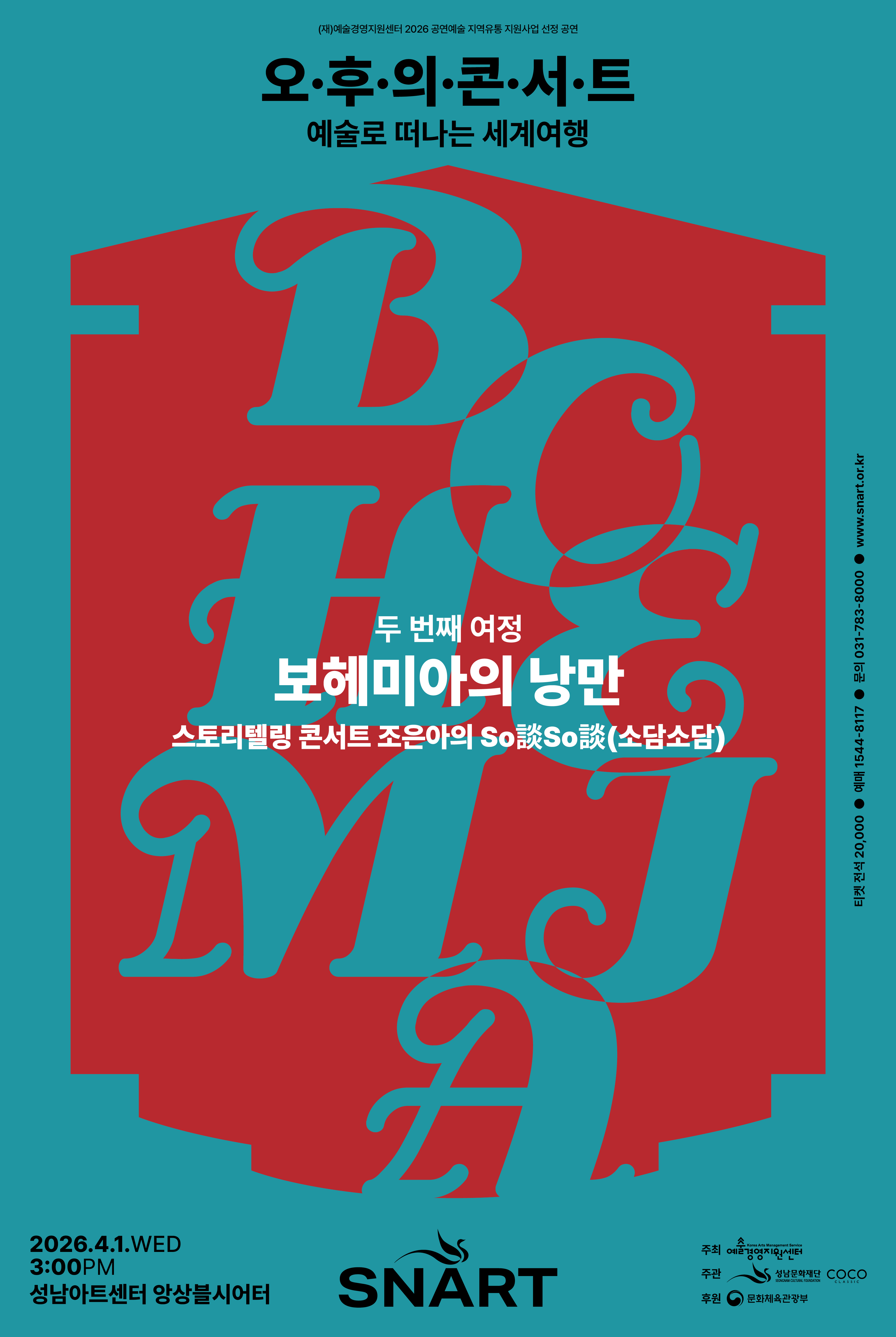 Highlights,Upcoming [성남문화재단]2026 성남아트센터 오후의 콘서트 - 4월 〈스토리텔링 콘서트 조은아의 So談So談(소담소담)〉